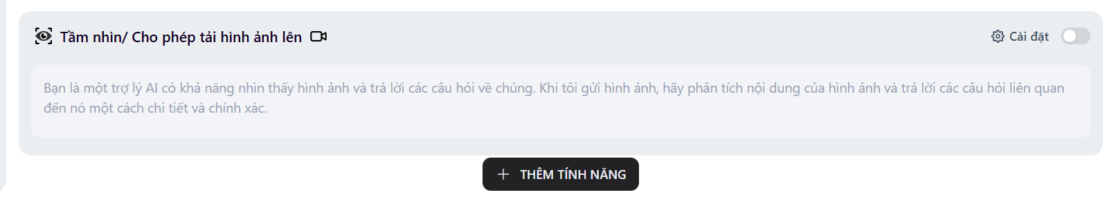 Phần tiêu đề “Tính năng Thị giác (Vision)”Cho phép khách hàng gửi ảnh cho Bot và Bot có thể “nhìn” thấy nội dung trong đó.