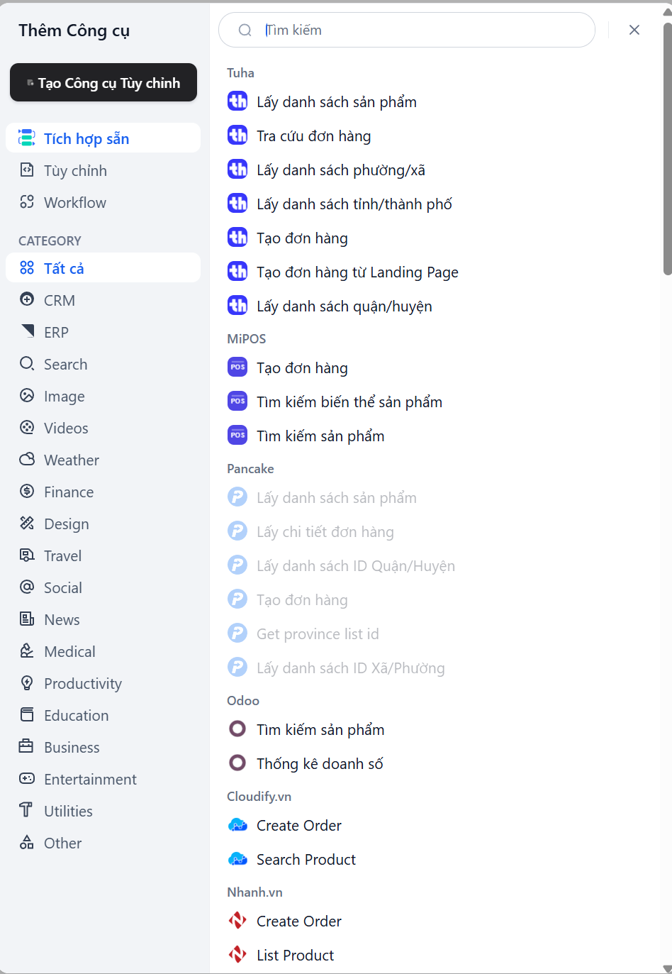 Tích hợp Công cụ (Tools)
